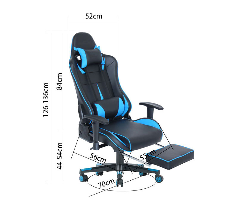 বাড়ি / পণ্য / গেমিং চেয়ার / আধুনিক এরগনোমিক সুইভেল লেদার ফুটরেস্ট ব্লু গেমিং চেয়ার আরজিবি